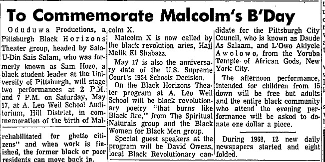 The A. Leo Weil School auditorium at 2250 Centre Ave became home to Black Horizon Theatre, and they staged plays there from 1968 to 1972. The school’s principal allowed them to use the auditorium at no charge.